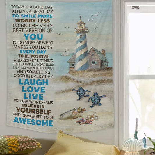 Turtle On Beach Sand - Today Is A Good Day Religious Tapestries - Christian Wall Tapestry Decor