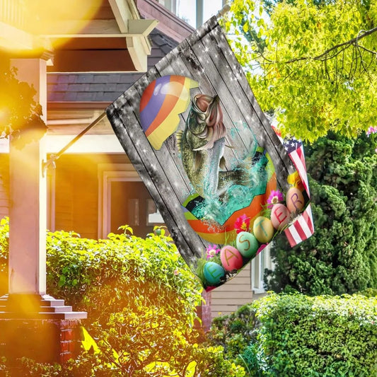 Bass Fishing Happy Easter House Flag - Easter Garden Flag - Easter Outdoor Decor