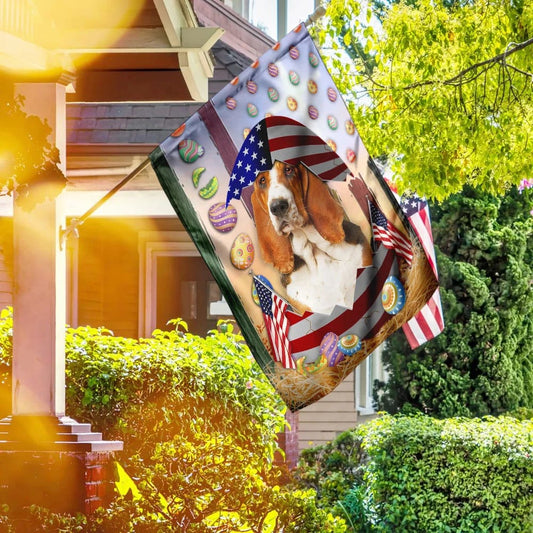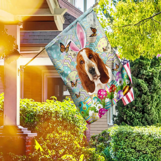 Basset Hound American Easter House Flags - Happy Easter Garden Flag - Decorative Easter Flags