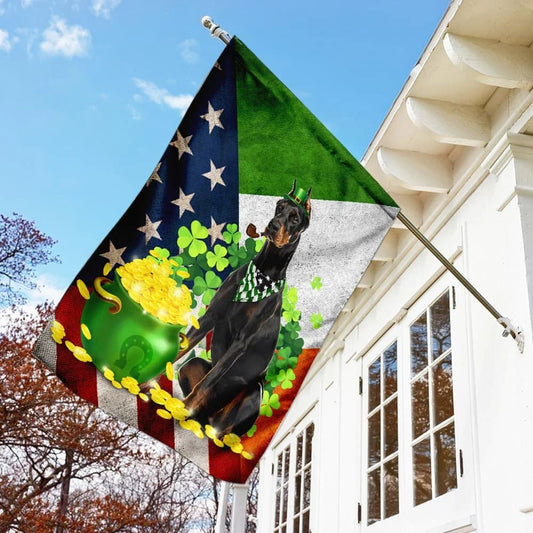 Doberman House Flag - St Patrick's Day Garden Flag - Outdoor St Patrick's Day Decor