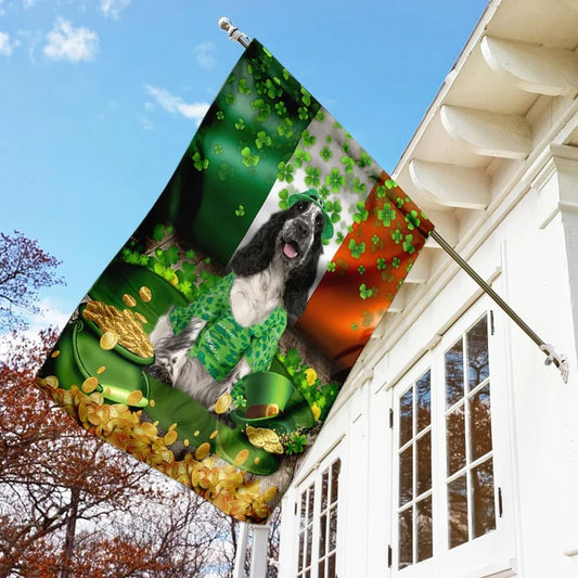 • English Cocker Spaniel House Flag - St Patrick's Day Garden Flag - Outdoor St Patrick's Day Decor