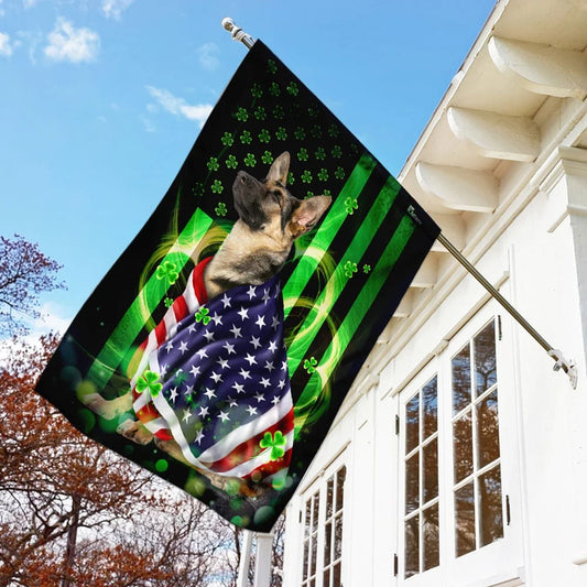 • German Shepherd House Flag - St Patrick's Day Garden Flag - Outdoor St Patrick's Day Decor