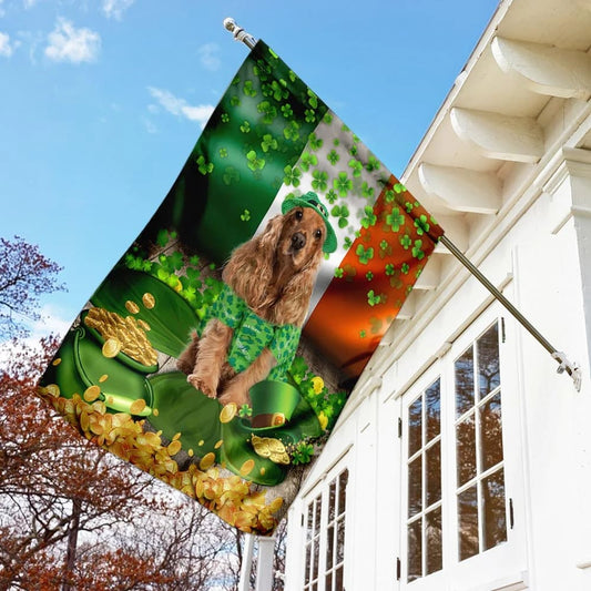 • Golden English Cocker Spaniel House Flag - St Patrick's Day Garden Flag - Outdoor St Patrick's Day Decor
