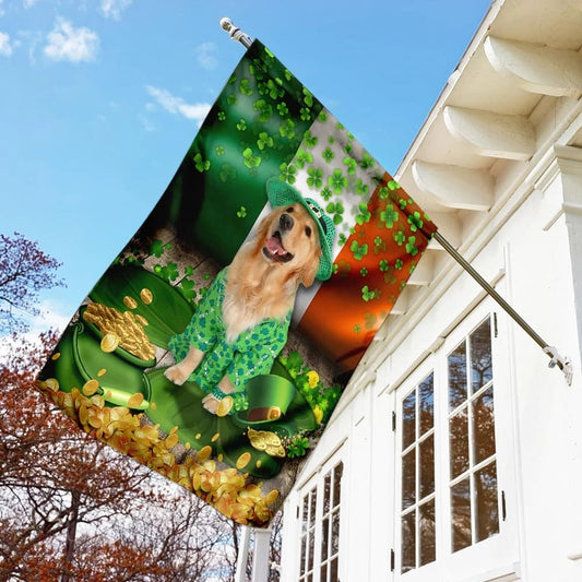 • Golden Retriever House Flag - St Patrick's Day Garden Flag - Outdoor St Patrick's Day Decor