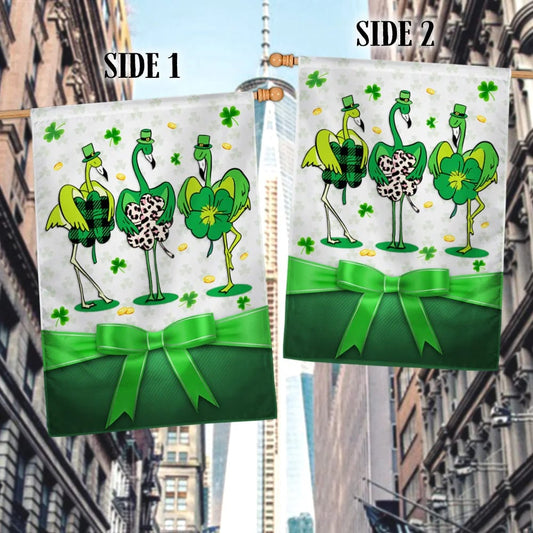 • Flamingo House Flag - St Patrick's Day Garden Flag - Outdoor St Patrick's Day Decor