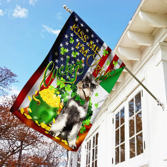 • Miniature Schnauzer Kiss Me I'm Irish House Flag - St Patrick's Day Garden Flag - Outdoor St Patrick's Day Decor