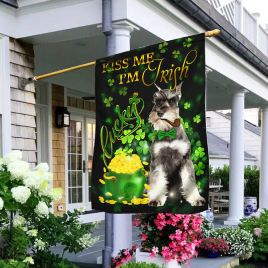 • Kiss Me I'm Irish Miniature Schnauzer House Flag - St Patrick's Day Garden Flag - Outdoor St Patrick's Day Decor