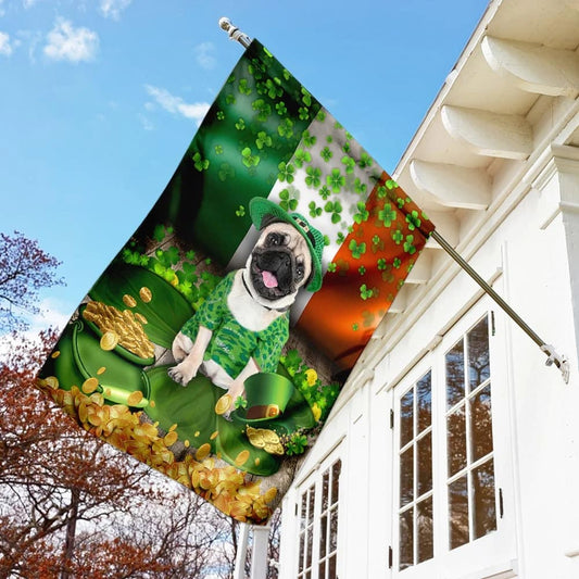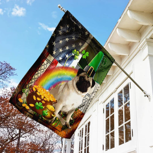 • Pug Irish American House Flag - St Patrick's Day Garden Flag - Outdoor St Patrick's Day Decor