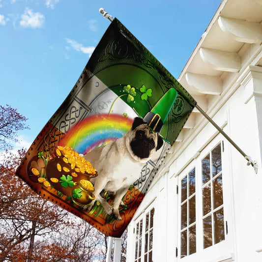 Pug Irish House Flag - St Patrick's Day Garden Flag - Outdoor St Patrick's Day Decor