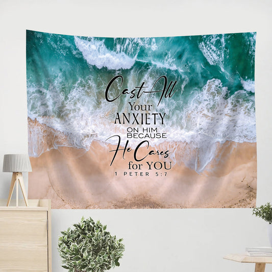 Cast All Your Anxiety On Him Because He Cares For You 1 Peter Tapestry - Christian Tapestries - Wall Tapestry Bible Verse