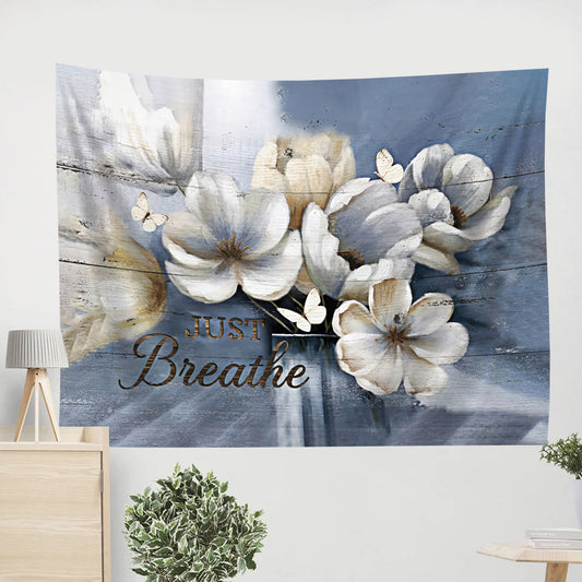Flower Just Breathe Tapestry - Christian Tapestries - Wall Tapestry Bible Verse