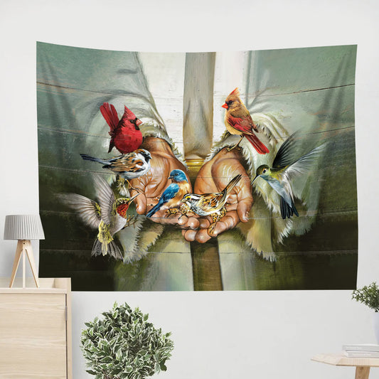God's Hand Hummingbird Tapestry - Christian Tapestries - Wall Tapestry Bible Verse