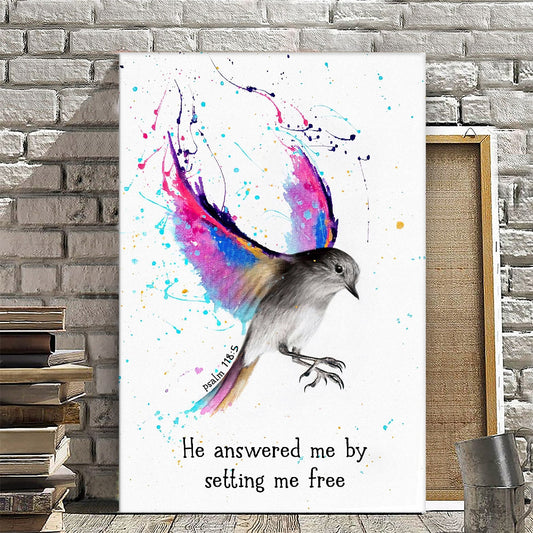 Bird - He Answered Me By Setting Me Free - Psalm 118:5 - Christian Canvas Prints - Faith Canvas - Bible Verse Canvas - Ciaocustom