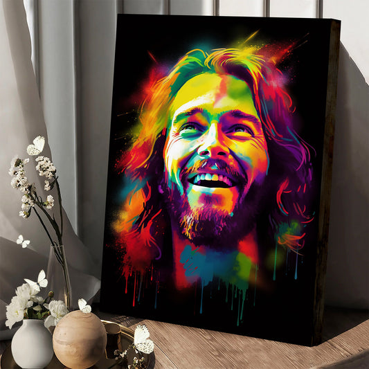Jesus Smiling Popping Colors - Jesus Canvas Pictures - Christian Wall Art