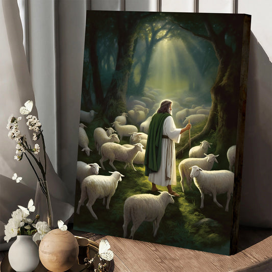 • Jesus Standing Amidst A Flock Of Sheep In The Garden Of Gethsemane - Jesus Canvas Pictures - Christian Wall Art