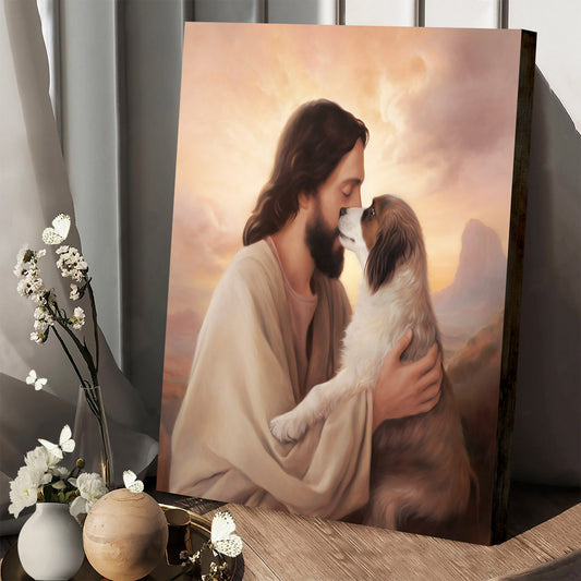 Jesus Kissing A Dog - Jesus Canvas Pictures - Christian Wall Art