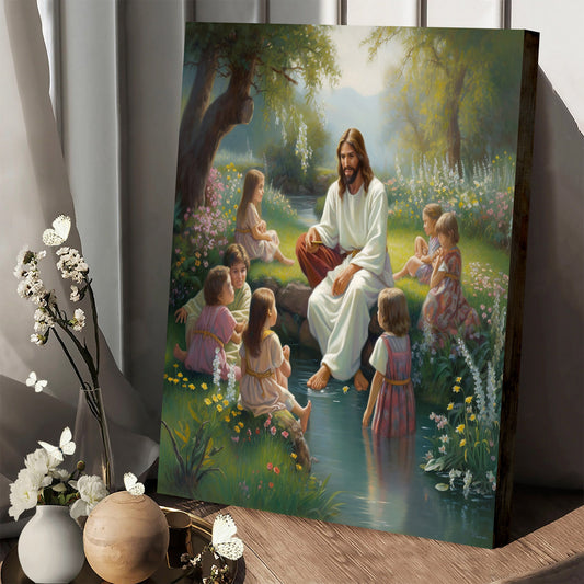 • Jesus Sitting Beside A Stream - Conversing With Children - Jesus Canvas Pictures - Christian Wall Art