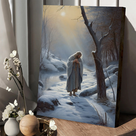 Jesus In Winter Scene - Snow And Ice Landscape 2 - Jesus Canvas Pictures - Christian Wall Art