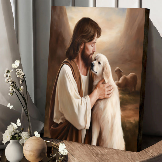 Jesus Holding A Dog - Jesus Canvas Pictures - Christian Wall Art