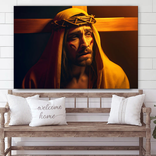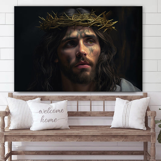 Jesus With A Crown Of Thorns On His Head - Canvas Picture - Jesus Christ Canvas - Christian Wall Art