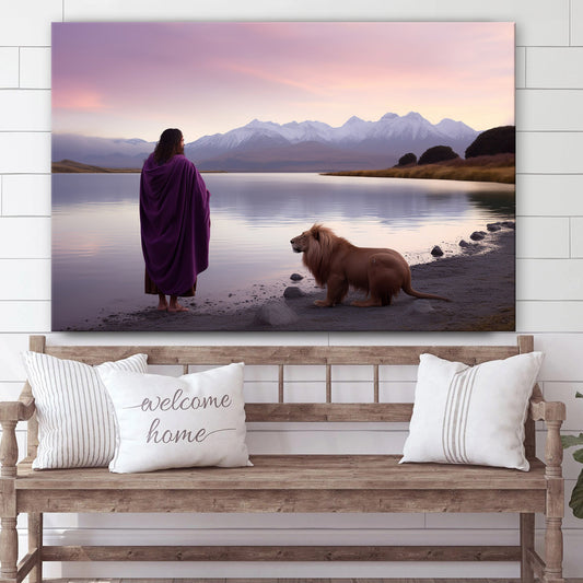 Jesus With Lion By Lake 2 - Canvas Picture - Jesus Christ Canvas - Christian Wall Art
