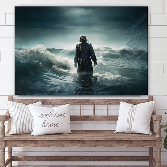 Jesus Is Walking In The Ocean Waves - Canvas Picture - Jesus Christ Canvas - Christian Wall Art
