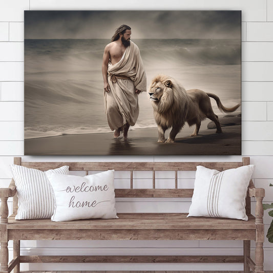 Jesus Leading A Lion To Water 1 - Canvas Picture - Jesus Christ Canvas - Christian Wall Art