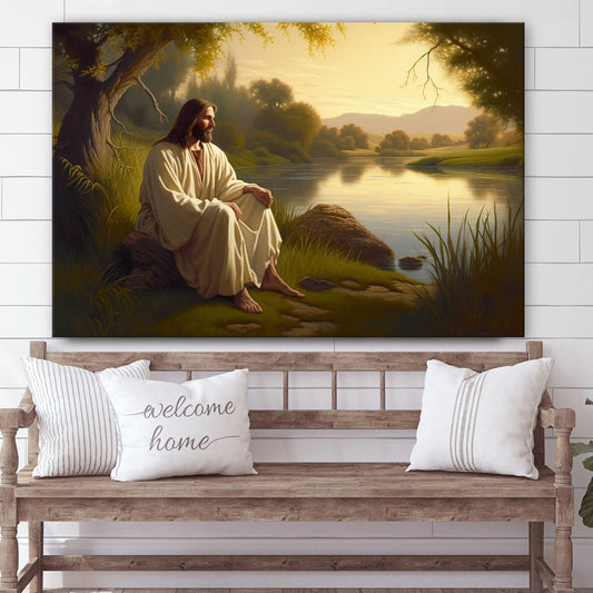 Jesus Sitting Near The River - Canvas Picture - Jesus Christ Canvas - Christian Wall Art