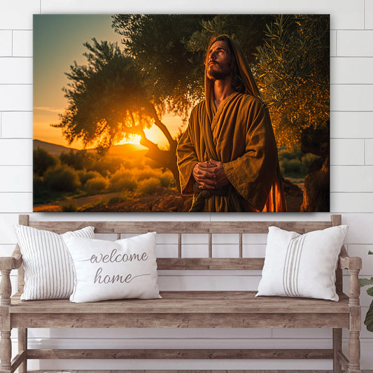 Jesus Person With An Olive Tree Sunset - Canvas Picture - Jesus Christ Canvas - Christian Wall Art
