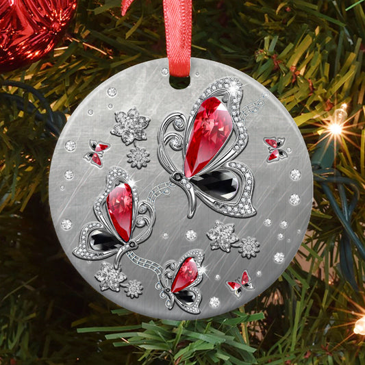 Butterfly Black Red Diamond Circle Ornament - Christmas Ornament - Ciaocustom