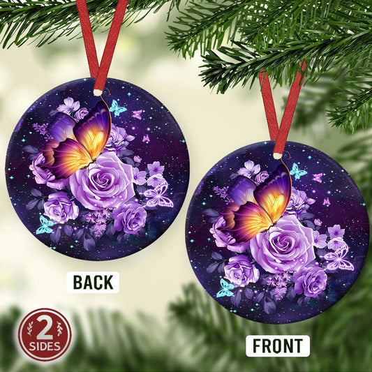 Butterfly Purple Flowers Circle Ornament - Christmas Ornament - Ciaocustom