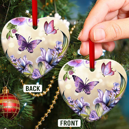 Butterfly Purple Flowers Heart Ornament - Christmas Ornament - Ciaocustom