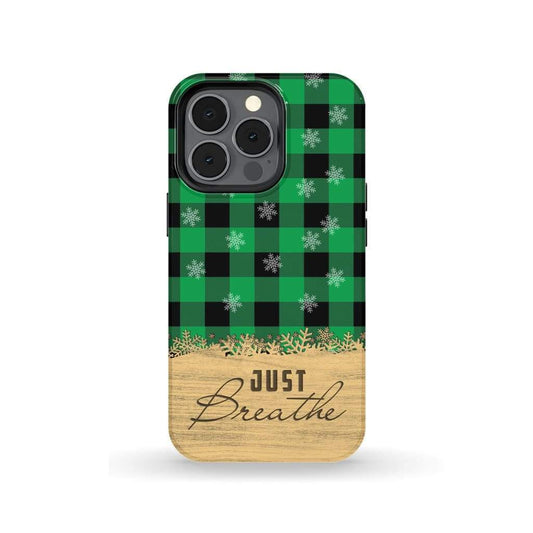 Just Breathe Green Black Buffalo Phone Case - Inspirational Bible Scripture iPhone Cases