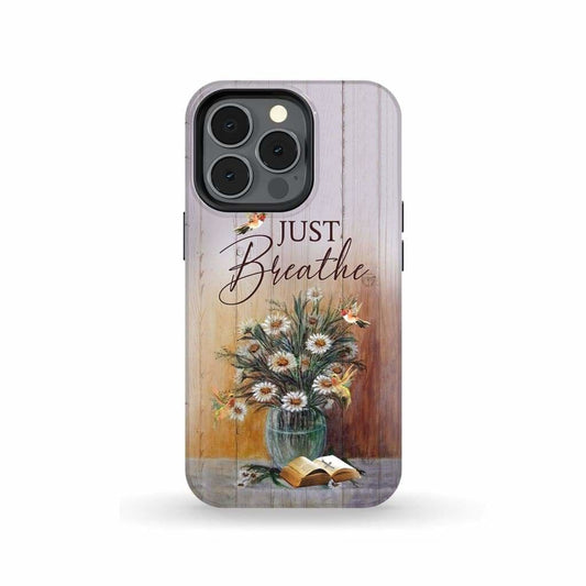 Just Breathe Hummingbird Daisy Phone Case - Christian Phone Cases - Inspirational Bible Scripture iPhone Cases
