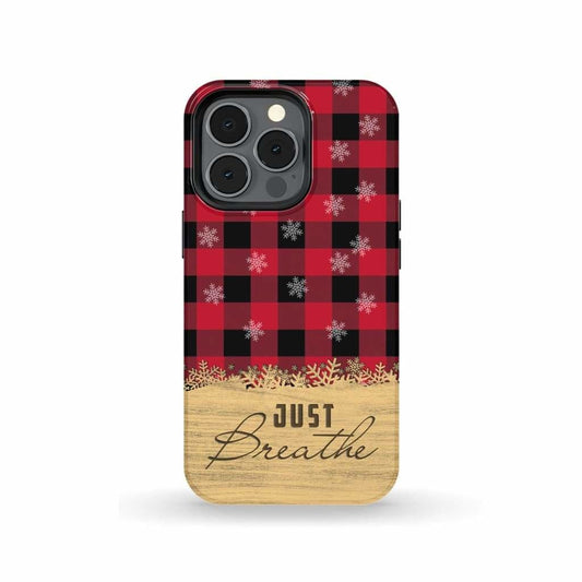 Just Breathe Red Black Buffalo Phone Case - Inspirational Bible Scripture iPhone Cases