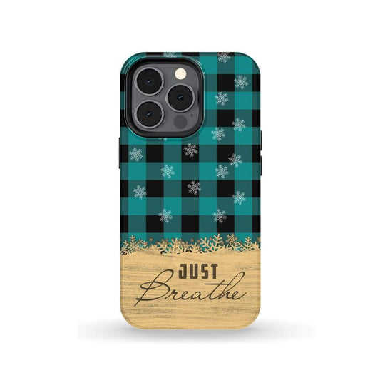 Just Breathe Teal Black Buffalo Phone Case - Inspirational Bible Scripture iPhone Cases