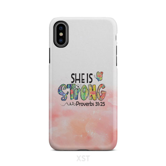 • Christian Phone Cases She Is Strong Proverbs 3125 Bible Verse Phone Case - Christian Gifts for Women