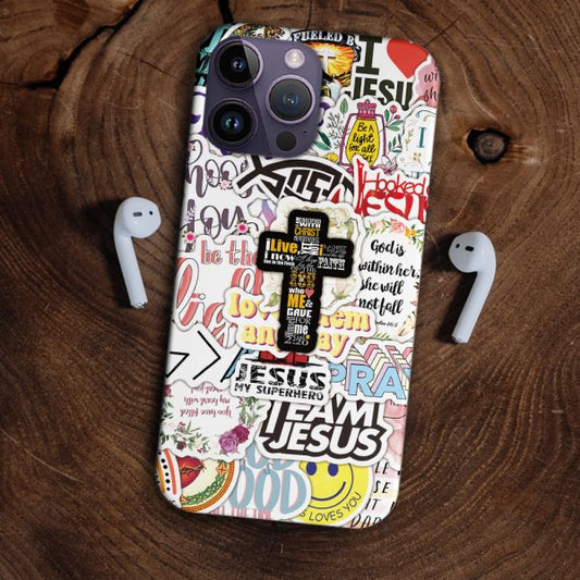 Jesus Funny Sticker Personalized Phone Case - Christian Phone Case - Bible Verse Phone Case