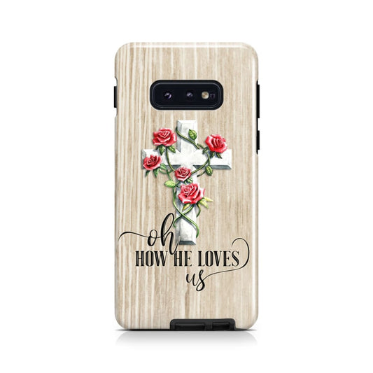 Oh How He Loves Us - Cross Rose Phone Case - Christian Phone Cases - Inspirational Bible Scripture iPhone Cases