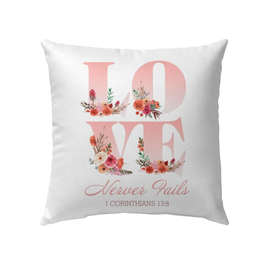 Love Never Fails 1 Corinthians 138 Bible Verse Pillow
