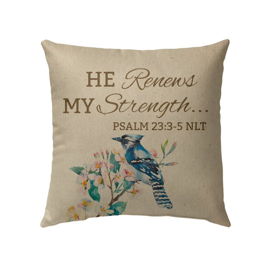 He Renews My Strength Psalm 233-5 Bible Verse Pillow