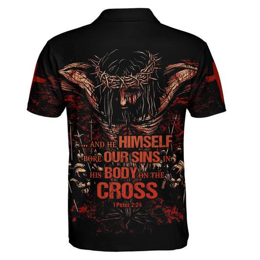 And He Himself Bore Our Sins In His Body On The Cross Jesus Polo Shirt - Christian Shirts & Shorts
