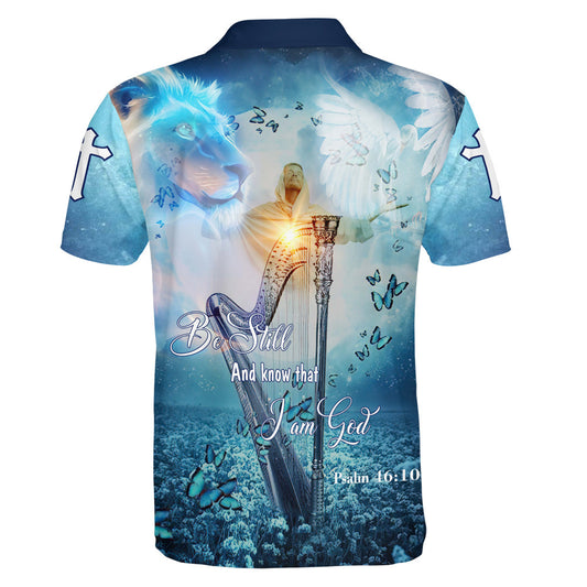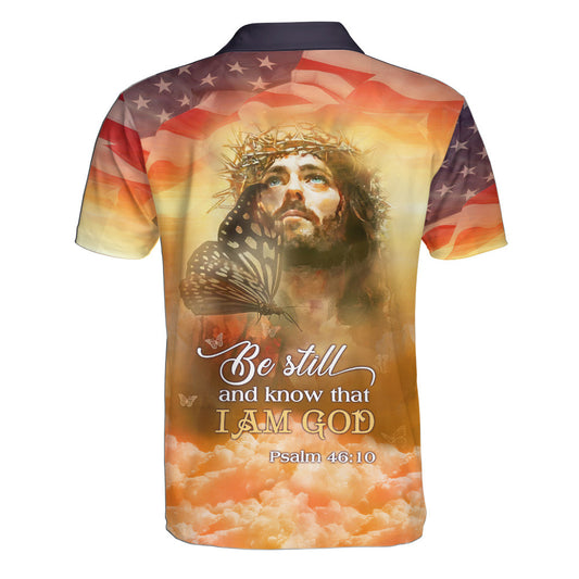 Be Still And Know That I Am God Jesus And Butterfly Polo Shirt - Christian Shirts & Shorts
