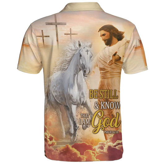 Be Still And Know That I Am God Jesus And Horse Polo Shirt - Christian Shirts & Shorts