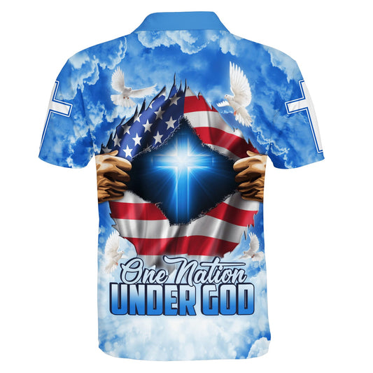 One Nation Under God Cross Polo Shirt - Christian Shirts & Shorts