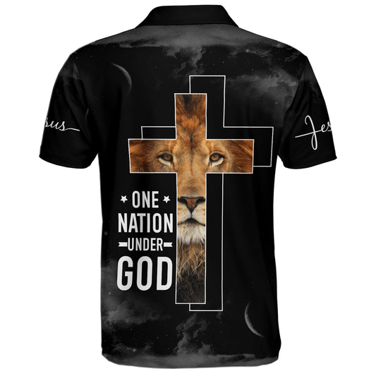 • One Nation Under God Lion And Cross Polo Shirt - Christian Shirts & Shorts