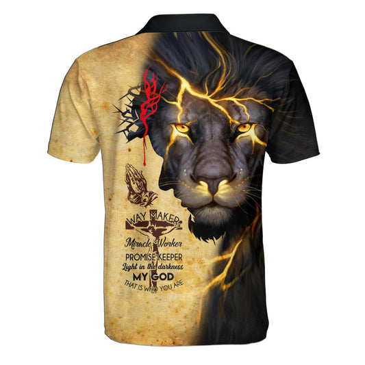 Way Maker Miracle Worker Promise Keeper Light Lion Polo Shirt - Christian Shirts & Shorts
