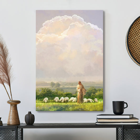 He Leadeth Me Canvas Poster - Jesus Christ And The Lambs Vertical Canvas Wall Art - Ciaocustom