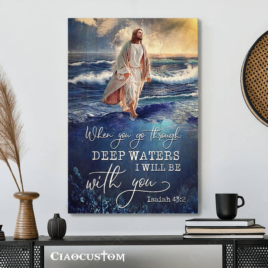 When You Go Through Deep Waters - Jesus Canvas Wall Art - Bible Verse Canvas - Christian Canvas Wall Art