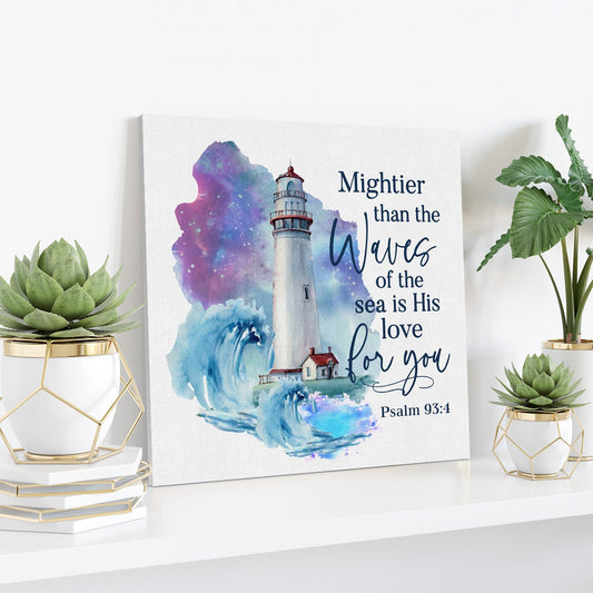 Bible Verse Canvas - Mightier Than The Waves Of The Sea Is His Love For You Psalm 934 Canvas - Scripture Canvas Wall Art - Ciaocustom